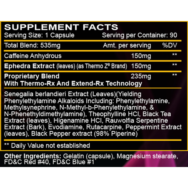 - Екстракт ефедри – 150 мг