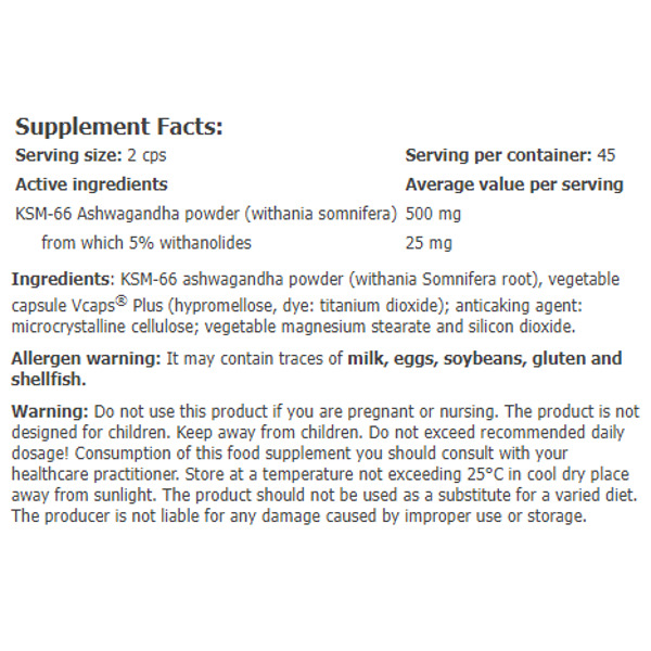 - KSM-66 Порошок ашваганды (withania somnifera) 500 мг