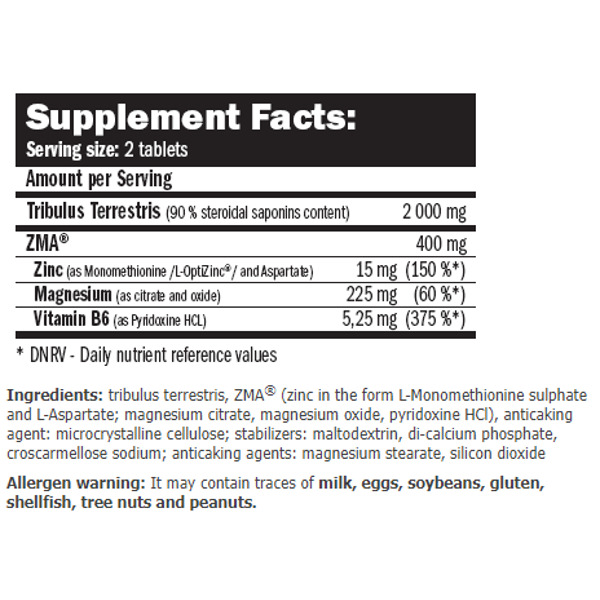 Tribu-ZMA выпускается в форме небольших таблеток, которые легко глотать и быстро усваивать.