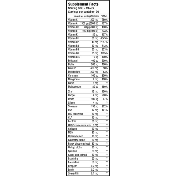 Благодаря своей мощной и сбалансированной формуле, Active Woman положительно влияет на состояние кожи, ногтей, волос, поддерживает здоровье костей и суставов, способствует высокому уровню энергии, укрепляет иммунную систему и замедляет процессы старения.
