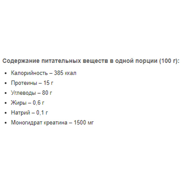 Углеводы и калории: Помимо белка, содержит углеводы и калории, необходимые для увеличения массы тела и энергии во время тренировок.