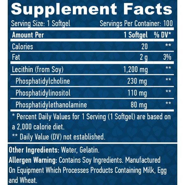 HaYa Labs Lecithin 1200 mg – это биологически активная добавка в виде мягких желатиновых капсул, которая содержит высококачественный лецитин, полученный из сои. Благодаря своей инкапсулированной форме продукт обеспечивает точную дозировку и комфортное использование. Лецитин является источником фосфолипидов, в частности фосфатидилхолина, которые играют важную роль в поддержании здоровья клеточных мембран, функции печени, сердечно-сосудистой функции и мозговой деятельности. Продукт рекомендуется как спортсменам, так и людям, стремящимся поддерживать общее состояние здоровья, улучшать концентрацию внимания, пищеварение и липидный обмен.