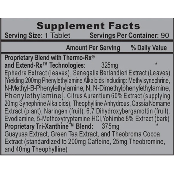 Экстракт эфедры оказывает стимулирующее действие, подавляет аппетит и активизирует процессы жиросжигания за счет высвобождения норадреналина. Экстракт акации содержит высокую концентрацию фенилэтиламина, который повышает уровень дофамина и норадреналина, улучшая настроение, концентрацию и когнитивные функции. Экстракты цитрусовых с синефрином усиливают термогенез и метаболические процессы. Йохимбин и эводиамин дополнительно повышают теплопродукцию и стимулируют процессы жиросжигания.