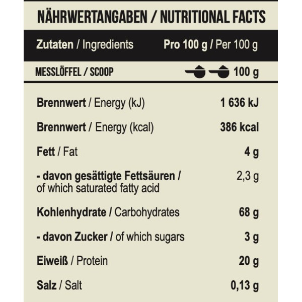- Сочетание простых и сложных углеводов для долгосрочного восполнения энергии.