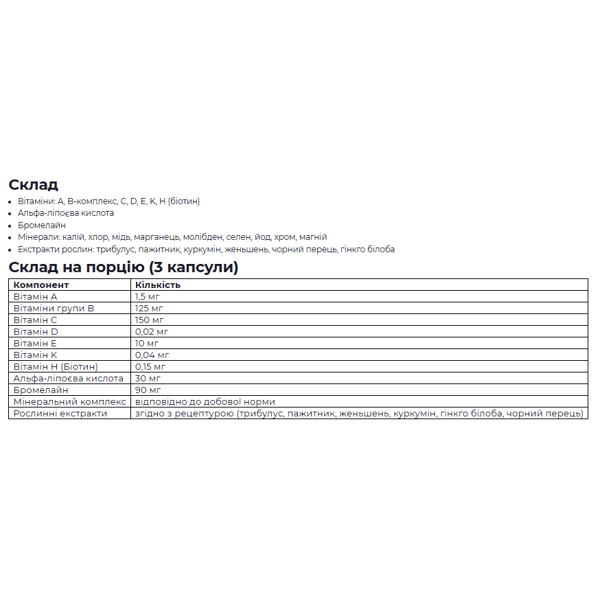 Благодаря сбалансированному составу комплекс помогает оставаться активным в любом возрасте, поддерживает иммунитет, улучшает обмен веществ и положительно влияет на мужскую репродуктивную функцию. Инкапсулированная форма обеспечивает удобство в ежедневном использовании.