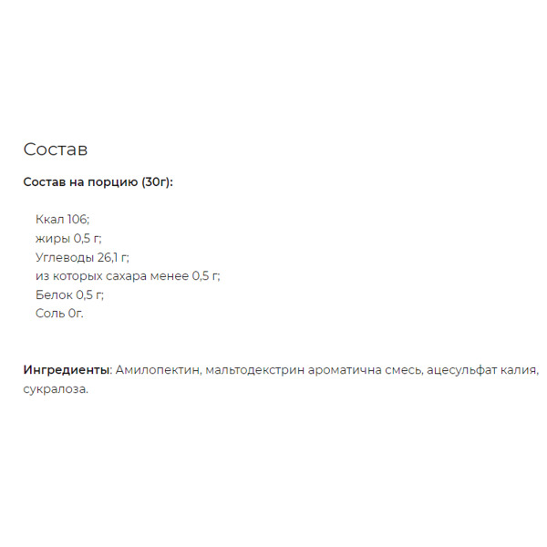 MST Waxy Maize Zero Sugar - это высококачественный источник сложных углеводов из воскообразной кукурузы, идеально подходящий для спортсменов и людей с активным образом жизни. Амилопектин, основной компонент продукта, обеспечивает быстрое восстановление энергетических запасов после физических нагрузок и способствует повышению выносливости во время тренировок. Благодаря отсутствию сахара и простых углеводов, добавка является отличным выбором для тех, кто следит за уровнем глюкозы в крови и избегает резких скачков инсулина. Легко растворяется в воде, подходит для приготовления энергетических коктейлей.