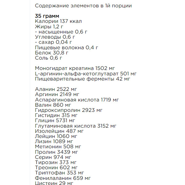Протеин также содержит креатин и аргинин AAKG, которые обеспечивают более быстрый рост мышечной массы и восстановление.