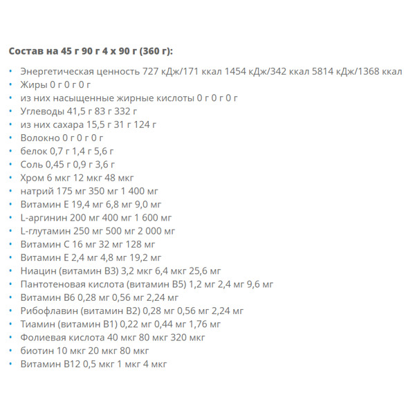 Он содержит разнообразные источники углеводов как для быстрого использования, так и для постепенного высвобождения энергии. 5 источников углеводов (мальтодекстрин, фруктоза, сахароза, глюкоза, изомальтулоза) дадут вам энергию и помогут восстановиться после интенсивных физических упражнений. Витамины группы В помогут уменьшить чувство усталости и утомления и в то же время поддерживать оптимальный энергетический обмен. Carbodrinx также уникален для спортсменов благодаря добавленным антиоксидантам, витаминам C, E и аминокислотам L-аргинину и L-глютамину.