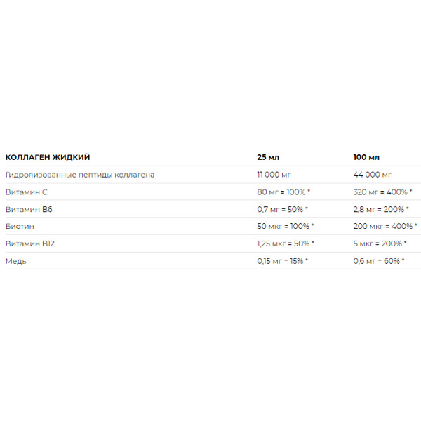 Состав на порцию (25 мл)