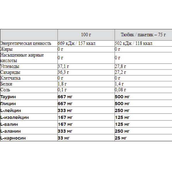Состав на порцию (1 туба - 75 г)