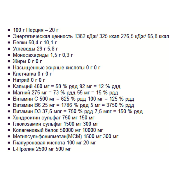 - Способствует укреплению суставов, связок и хрящевых тканей.