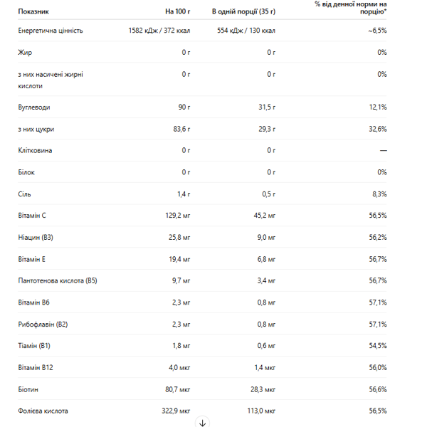 - Содержит быстроусвояемые углеводы для восполнения энергии.