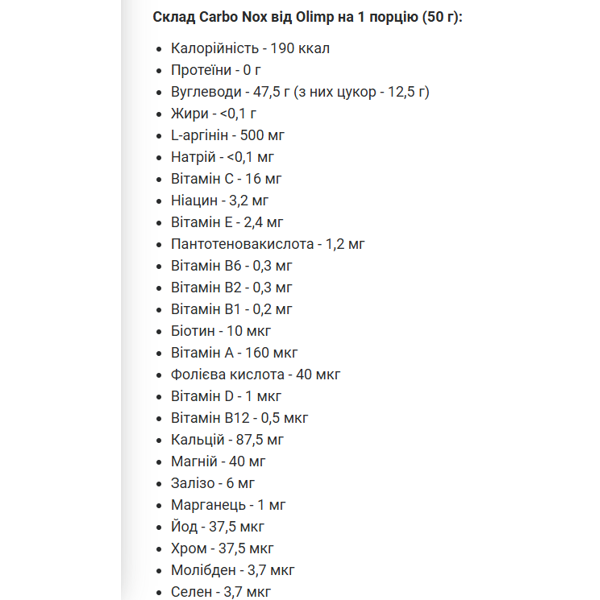 Olimp Carbo Nox – мощный углеводный комплекс, предназначенный для тех, кто хочет тренироваться на максимуме и быстро восстанавливаться после нагрузок. Формула продукта сочетает в себе разные виды углеводов с разными гликемическими показателями, благодаря чему энергия поступает постепенно и стабильно, без резких скачков уровня сахара в крови.