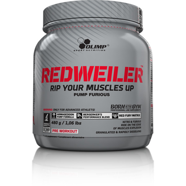 Olimp Redweiler - предтренировочный комплекс для бодибилдинга в форме порошка для приготовления энергетических коктейлей.