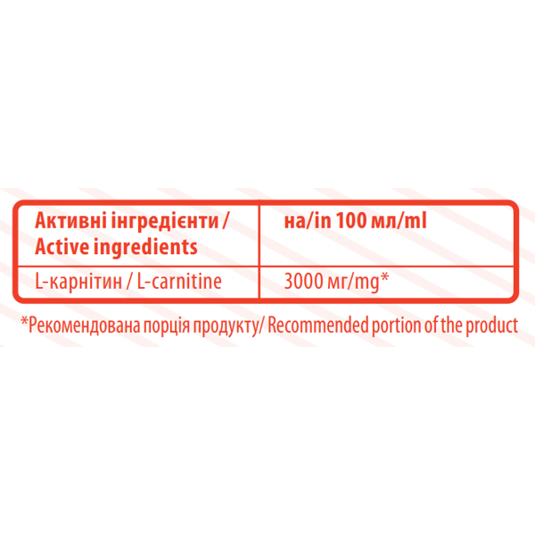 Шоты L - carnitine 3000 – диетическая добавка, содержащая L-карнитин, являющийся необходимым элементом метаболизма липидов, обеспечивающего эффективную транспортировку и сжигание жирных кислот в клеточных энергетических центрах.