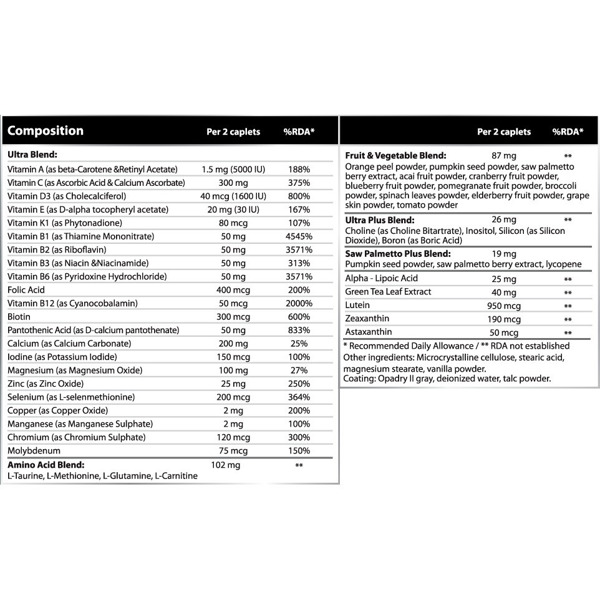 Ultra Men's Sport Multivitamin Formula – это комплекс витаминов и минералов, специально разработанный для мужчин, ведущих активный образ жизни и стремящихся поддерживать высокую физическую форму. Продукт содержит оптимально сбалансированные компоненты, которые способствуют улучшению общего самочувствия, повышению выносливости и укреплению иммунитета. Благодаря высокой биодоступности, комплекс быстро усваивается организмом, обеспечивая необходимыми микроэлементами для поддержания уровня энергии и нормализации обмена веществ.