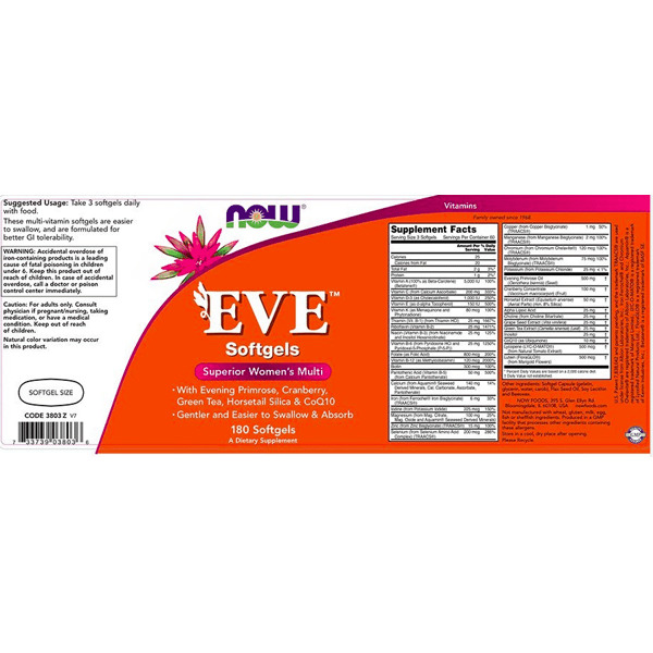 NOW Foods EVE Superior — это инновационные мультивитамины, разработанные специально для женщин, которые стремятся сохранить здоровье и молодость на всех уровнях. Уникальная формула содержит оптимальное сочетание витаминов, минералов и растительных экстрактов, которые способствуют улучшению состояния кожи, волос и ногтей, укреплению иммунитета, нормализации гормонального баланса и повышению уровня энергии. Благодаря мягким капсулам продукт легко всасывается, не вызывая дискомфорта в желудочно-кишечном тракте.