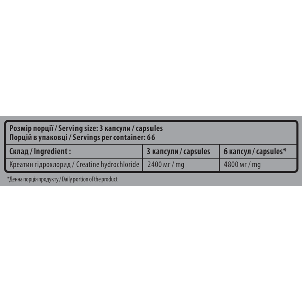 Sporter Creatine HCL 2400 мг – это высококачественная спортивная добавка в форме желатиновых капсул, предназначенная для эффективной поддержки физической выносливости и силы. Креатин гидрохлорид обладает высокой биодоступностью и не задерживает воду в организме, что делает его идеальным выбором для спортсменов и людей с активным образом жизни. Такая форма креатина позволяет добиться желаемых результатов при более низкой суточной дозе по сравнению с классическим моногидратом.