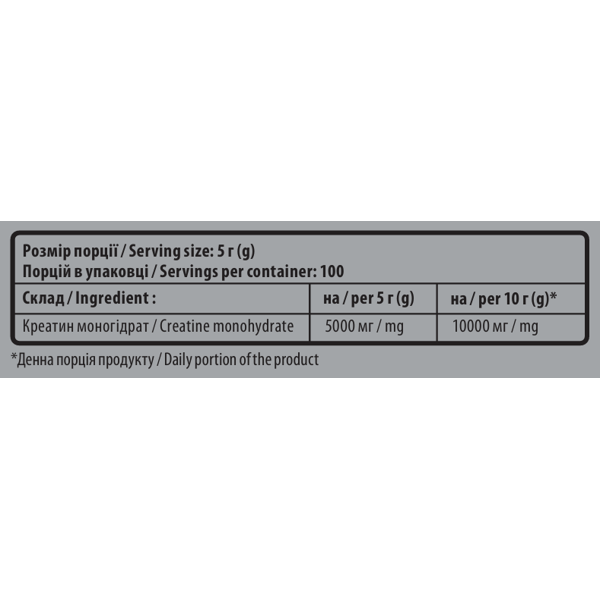 - Креатин моногидрат – 100%