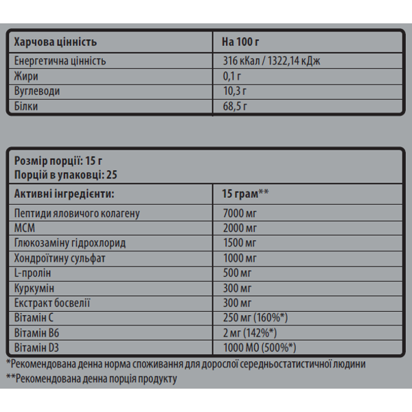 Размер порции: 15 г (3 мерные ложки)