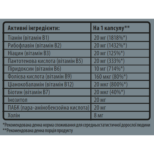 Витаминный комплекс В от Sporter предназначен для поддержания жизненной энергии, нормального функционирования нервной системы и стабильного обмена веществ. Продукт производится в Польше в соответствии с европейскими стандартами качества, что обеспечивает его безопасность и эффективность. Комплекс содержит все основные витамины группы В, а также дополнительные вещества, усиливающие их действие: холин, инозитол и парааминобензойную кислоту (ПАБК). Средство станет оптимальным выбором для активных людей, которые хотят улучшить свое здоровье, повысить выносливость и снизить уровень усталости.